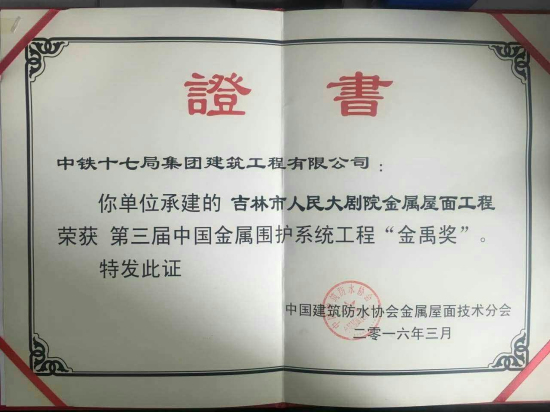 • 吉林市人民大劇院工程榮獲20...